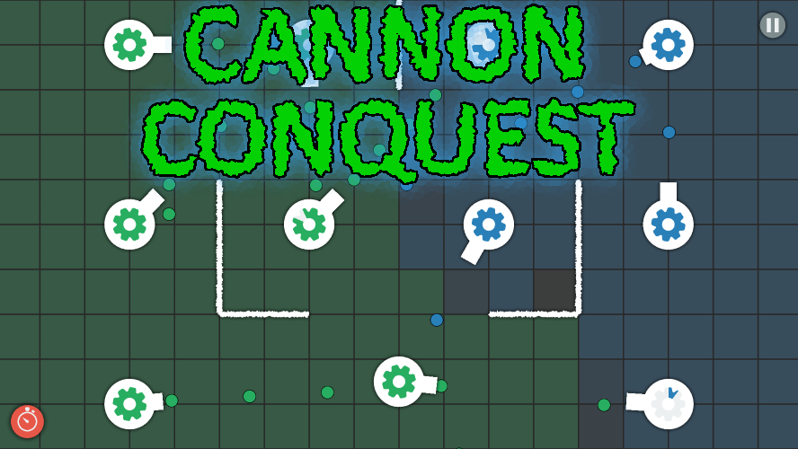 The idea is from an old flash game I played long ago, I even made a delphi version of the same game idea a few years ago. The objective is to capture all cannons on the field while one (or more) AI enemies try to do the same thing. Everything gets a bit more complex (and tactical) because you can block enemy bullets, reflect your own bullets and "boost" your own cannons by shooting them.